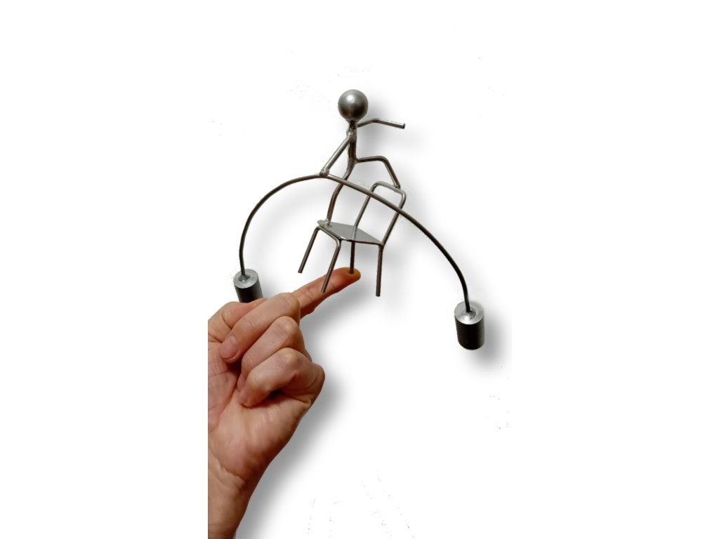 Tento akrobat balansuje na jednej nohe stoličky, pohybuje sa dopredu a dozadu, ohýba sa, točí a hojdá sa na všetky strany bez pádu. Je to zábavná a zaujímavá hračka, ktorú môžete umiestniť na váš stôl. Vyzerá skvele aj ako stredobod na stole, ako jednoduché umelecké dielo. Ideálne pre každú osobu a každú príležitosť! Pomôžte sebe alebo niekomu inému „nájsť rovnováhu“!