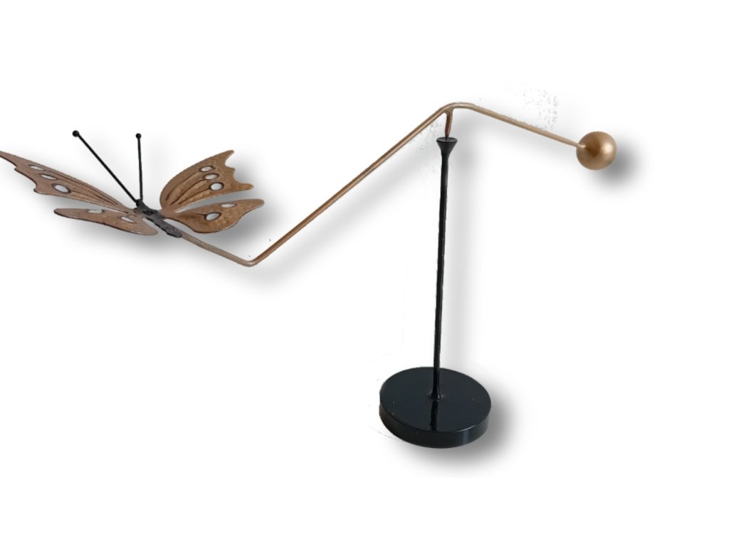 Zábavná kinetická ručne vyrobená kovová hračka. Fyzicky vyvážená hračka, starostlivo a presne vyvážená, táto socha je neuveriteľne vyvážená: stojí na malom bode, magicky stabilná. Jemne zatlačte na guľu a potom sledujte, ako letí a chvíľu sa pohybuje hore a dole – je to zábavná činnosť. Vietor alebo malý vetrík to dokáže rozletieť navždy. Hoci je navrhnutý tak, aby bol na zásobe, možno ho umiestniť na akýkoľvek predmet, ako je fľaša s vodou alebo dokonca prst. UPOZORNENIE VLASTNÝ BOD JE DOST OSTRÝ!