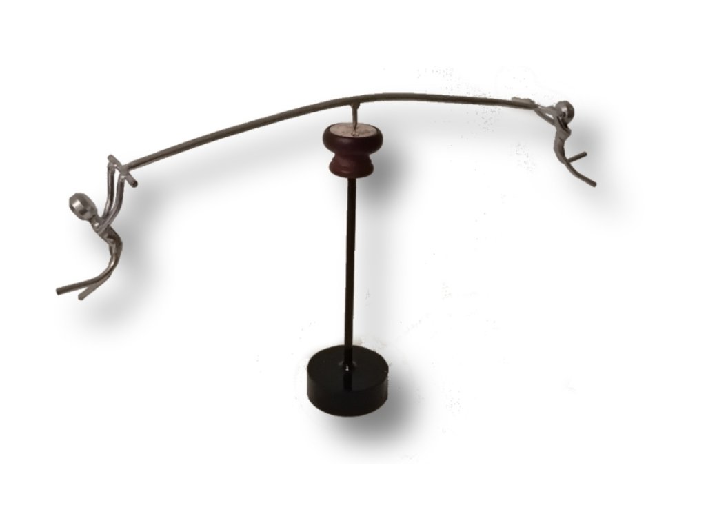 Títo dvaja priatelia si navzájom pomáhajú pri rovnováhe a voľne sa otáčajú. Jeden bez druhého padajú obaja. Balancujú na jedinom kolíku, jemne sa hojdajú, otáčajú a kolíšu dopredu a dozadu s veľmi jemným dotykom.